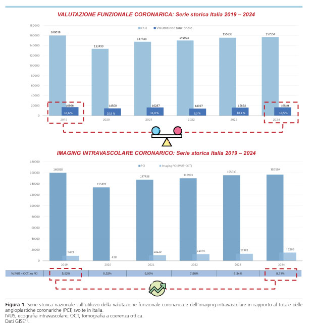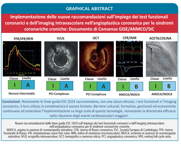Masiero G, Aurigemma C, Biscaglia S, Bruno F, Burzotta F, Campo G, Cangemi S, Chieffo A, Di Mario C, Esposito G, Perrone Filardi P, Giubilato S, Iannaccone M, Marchese A, Leone AM, Moscarella E, Oliva F, Polimeni A, Porto I, Saia F, Tarantini G, Scotto di Uccio F, Vergallo R, Indolfi C. Implementazione delle nuove raccomandazioni sull’impiego dei test funzionali coronarici e dell’imaging intravascolare nell’angioplastica coronarica per le sindromi coronariche croniche: documento di consenso GISE/ANMCO/SIC. G Ital Cardiol 2025;26(12):941-953. doi 10.1714/4599.46062